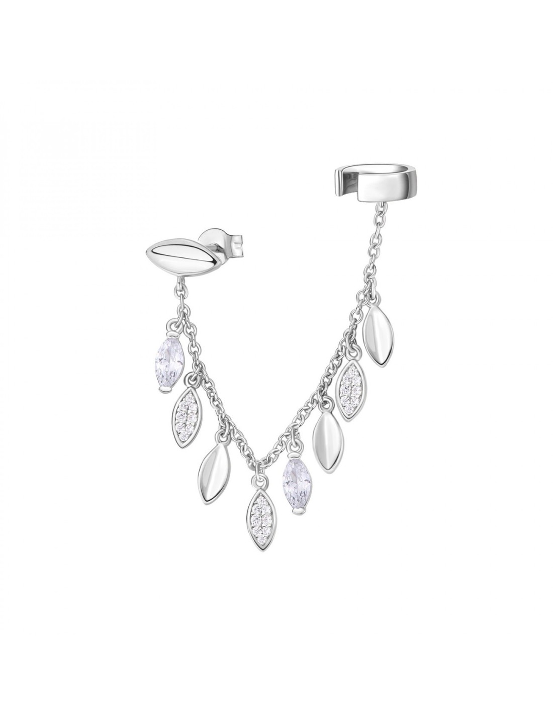 Orecchino singolo con catena ear cuff in argento 925, 26 cubic zirconia bianchi