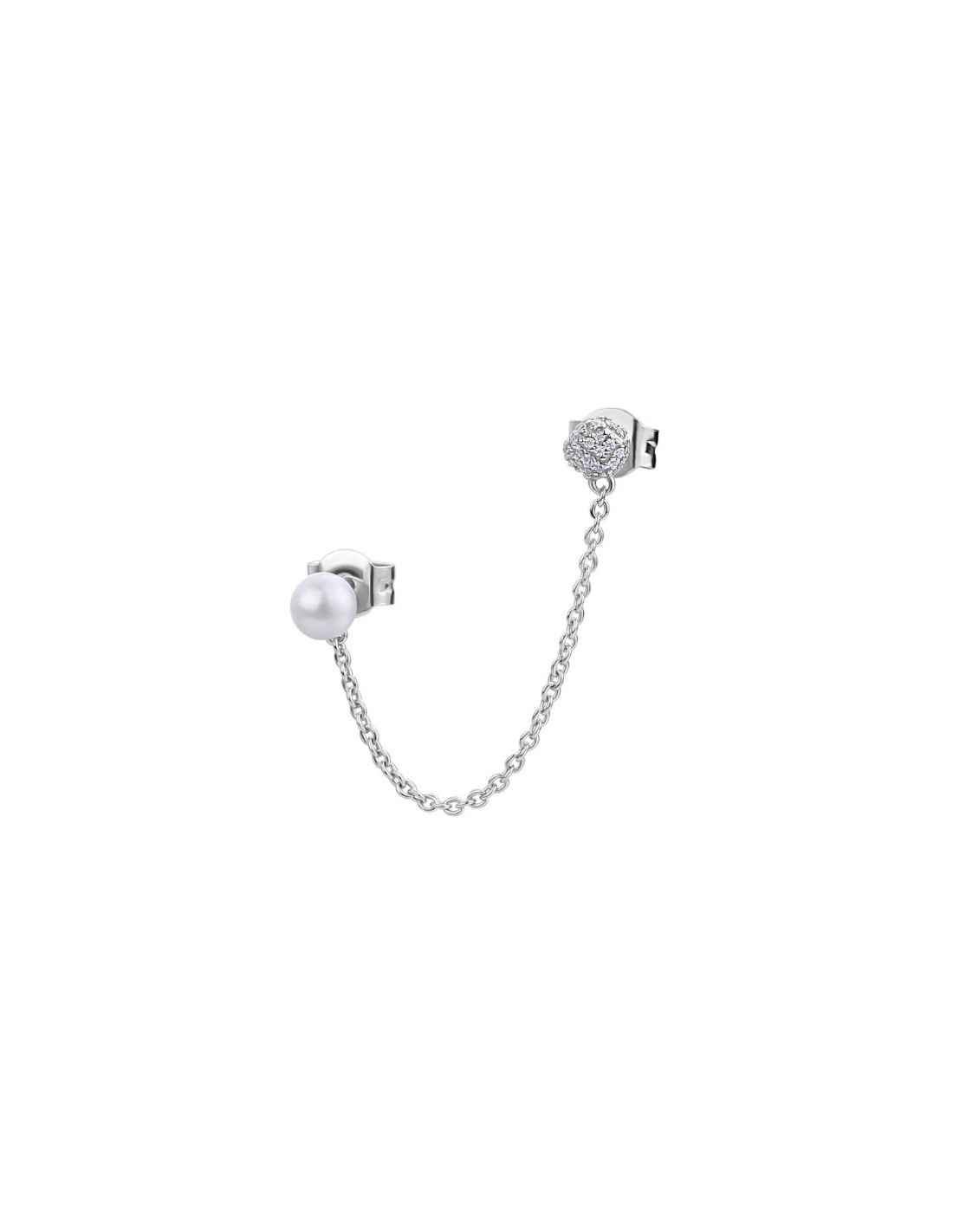 Orecchino doppio con catena in argento 925, 27 cubic zirconia bianchi, 1 perla naturale della collezione Azzurra.