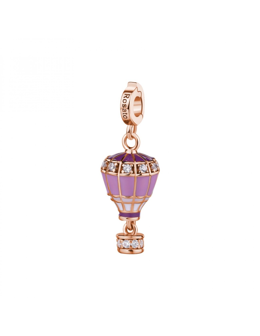 Charm in argento 925 a forma di mongolfiera, placcatura oro rosa, smalti colorati, 18 cubic zirconia bianchi