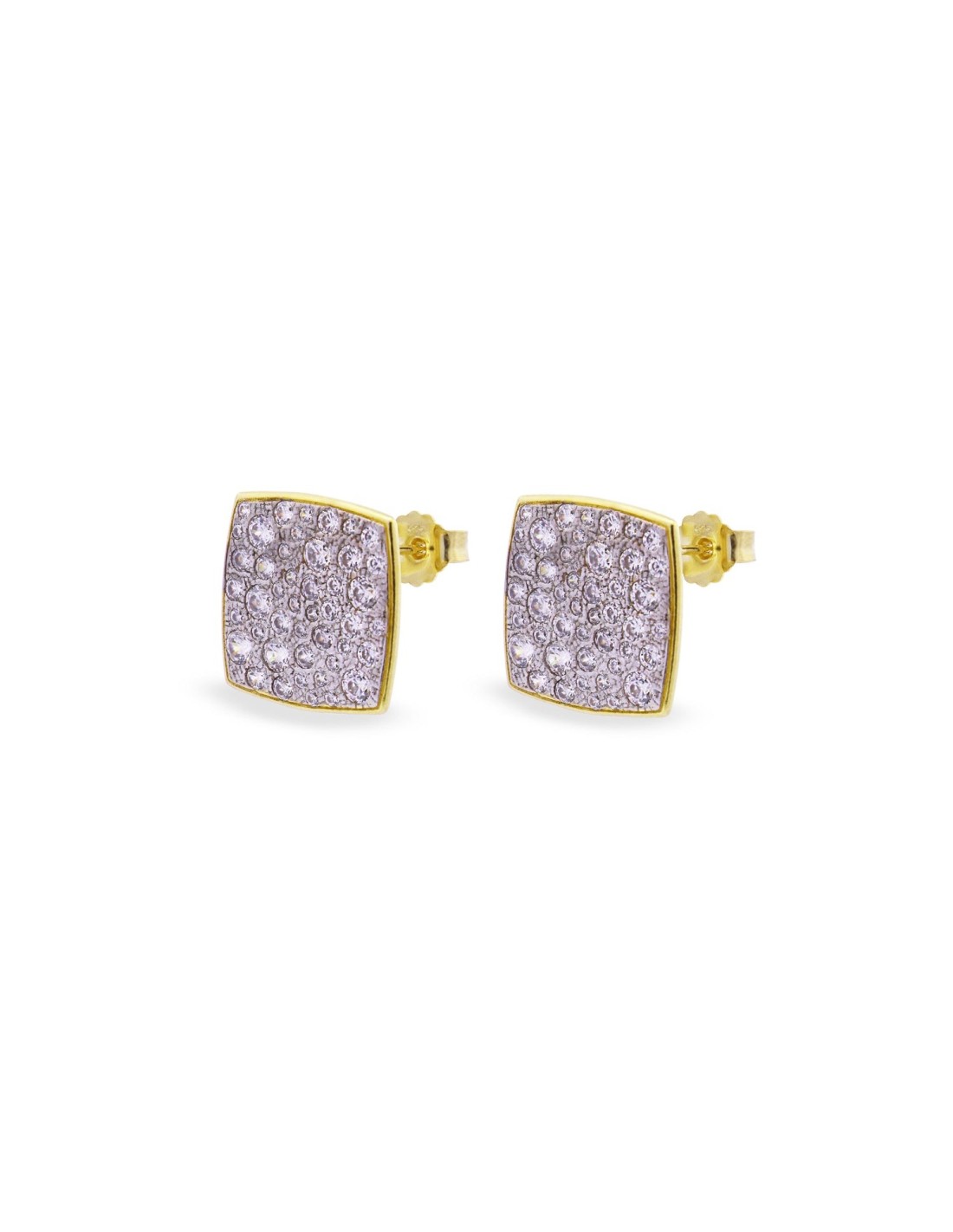 Coppia di orecchini lobo in versione oversized, con soggetto quadrato e pavè di zirconi.