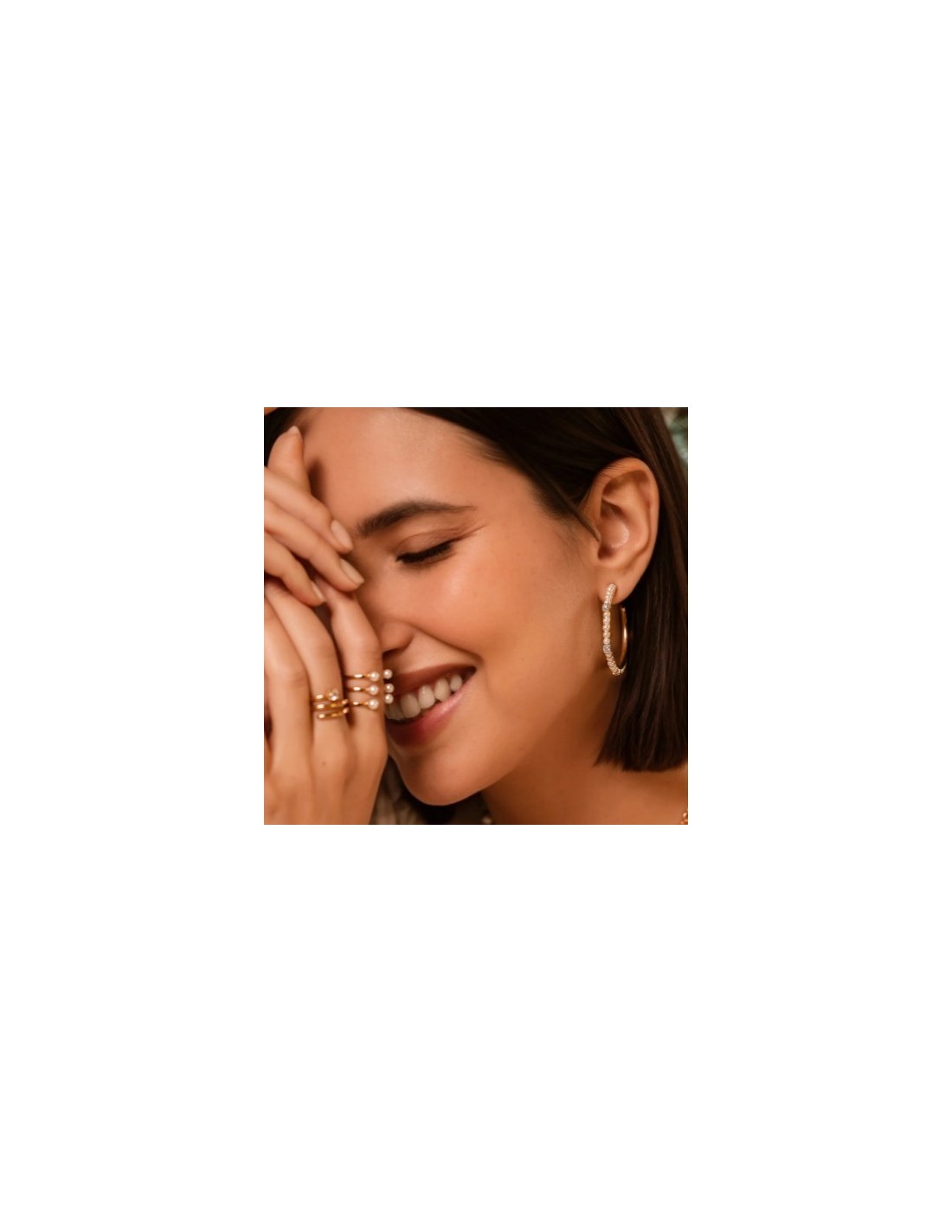 Coppia di orecchini a cerchio con perle di conchiglia alternate a zirconi