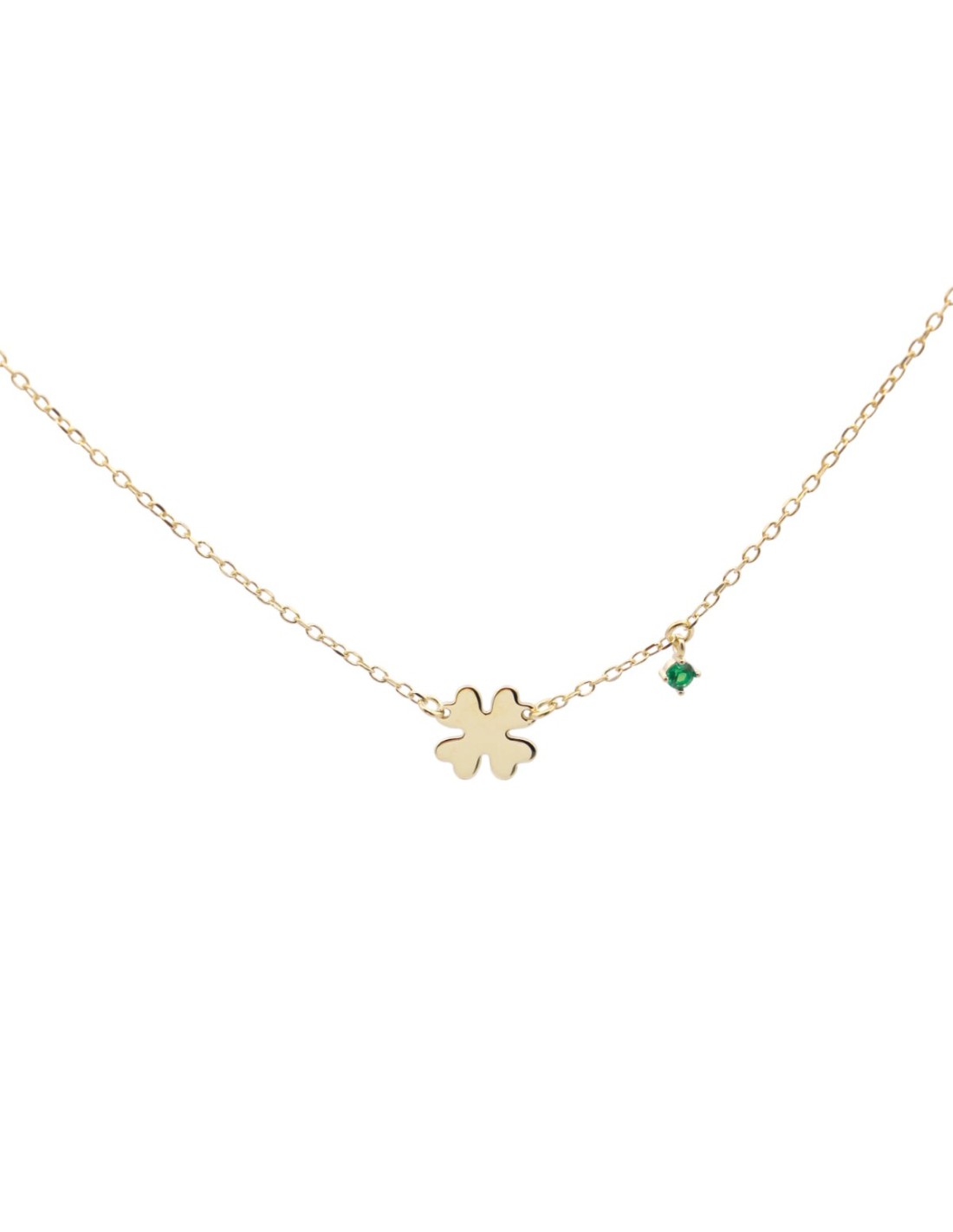 Girocollo con catena e quadrifoglio centrale con punto luce di zircone verde
