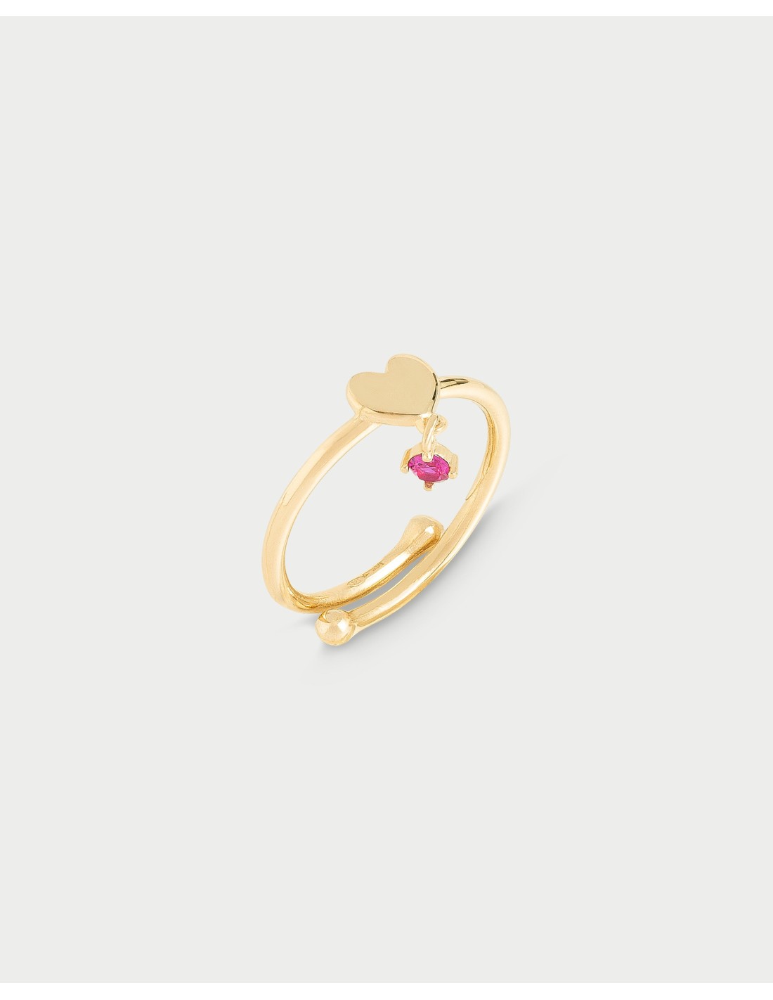 Anello line sottile con cuore centrale con punto luce di zircone rosso