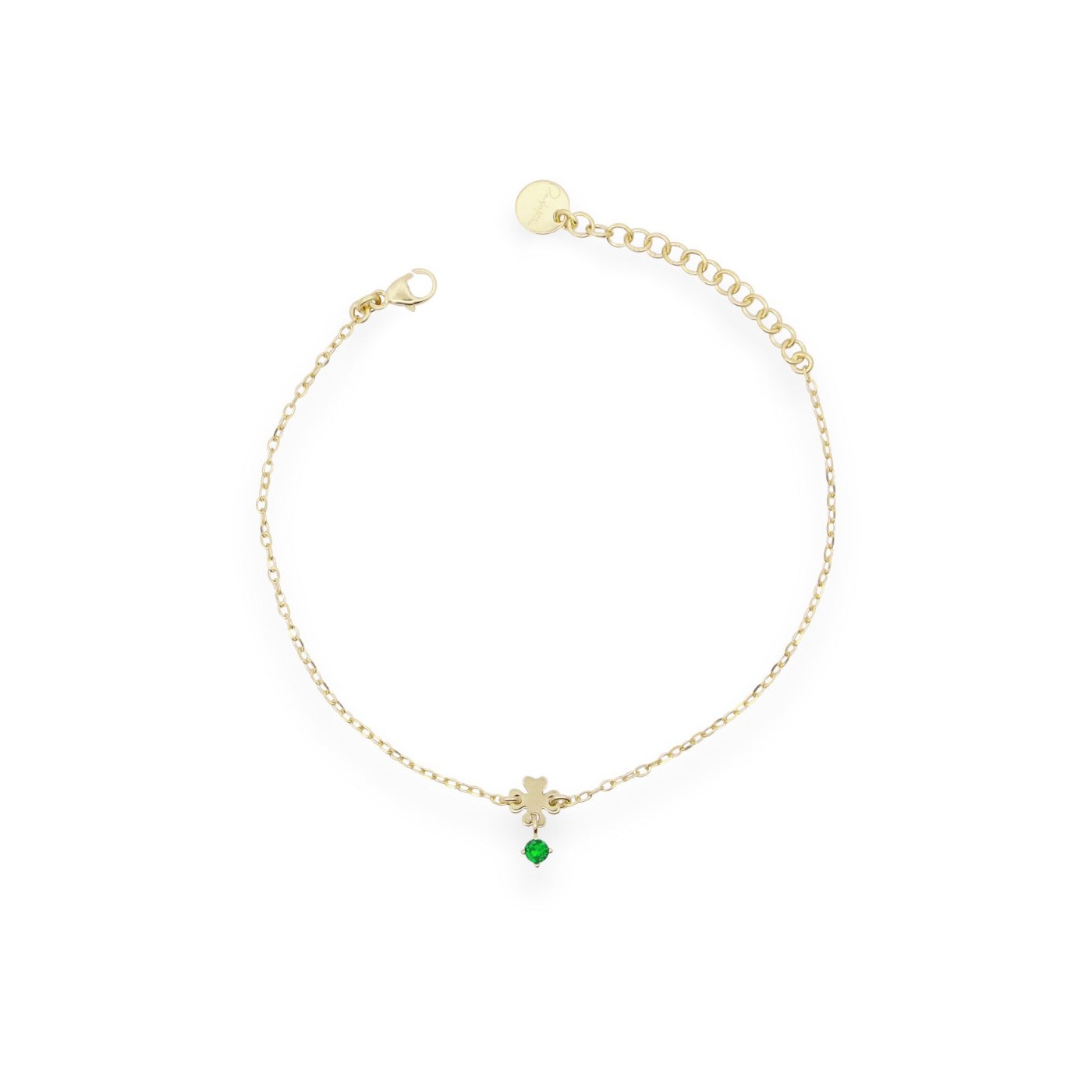 Bracciale con catena e quadrifoglio centrale con punto luce di zircone verde