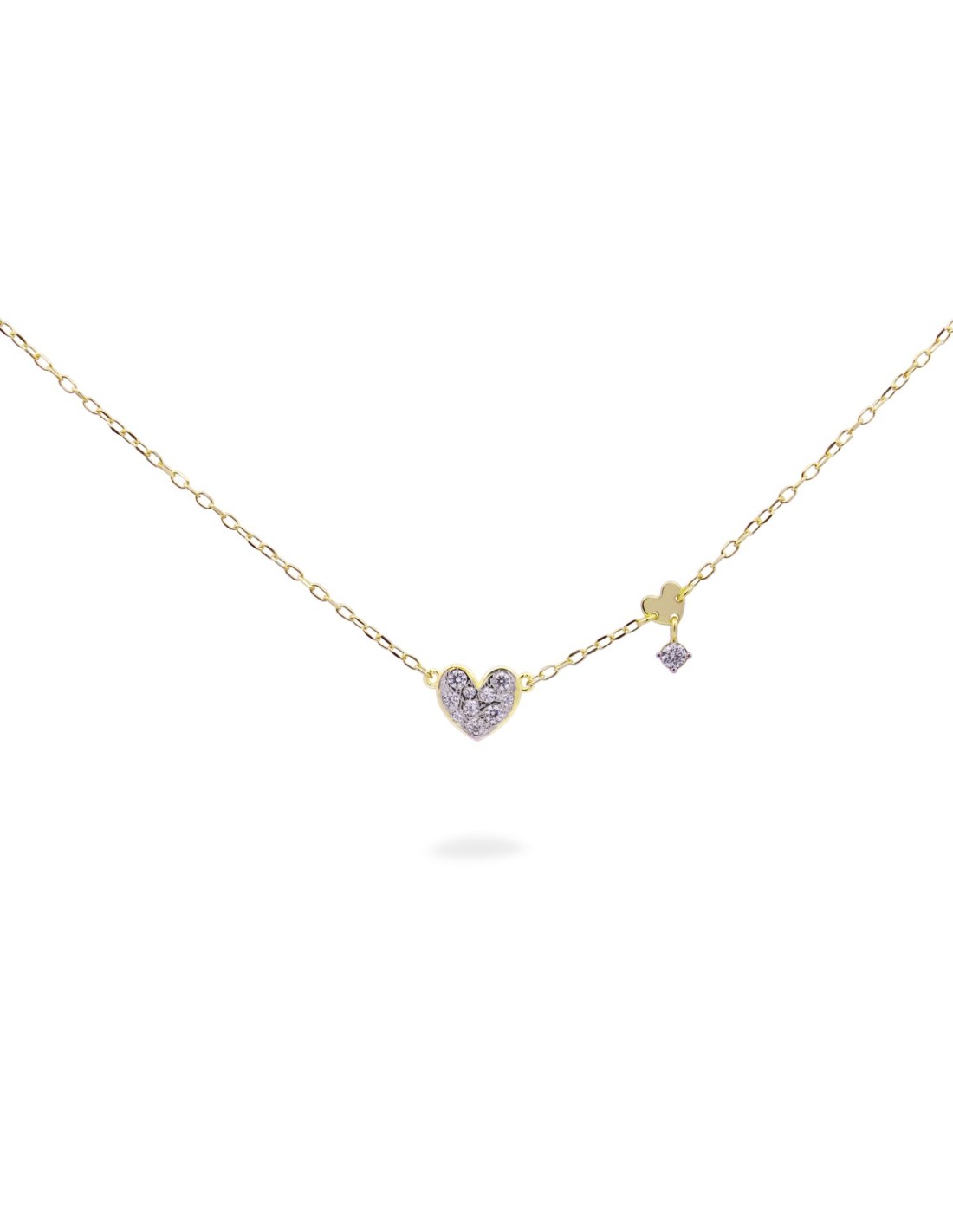 Girocollo con catena soggetto centrale cuore pavè e mini soggetto liscio con castone pendente.