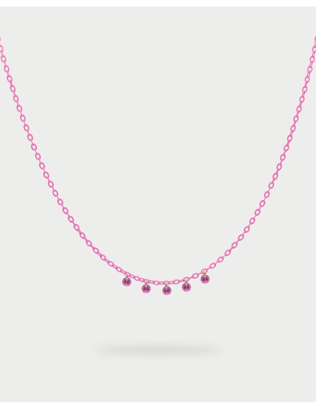 Vivace e contemporaneo, questo girocollo della collezione Gipsy Chic è pensato per chi ama i dettagli che fanno la differenza. Realizzato in argento 925 e completamente verniciato con smalto ultra resistente, regala un effetto di colore pieno e brillante. Cinque zirconi colorati pendenti aggiungono movimento e luminosità, creando un contrasto delicato ma dimpatto. Perfetto da indossare da solo come punto luce sul collo o da mixare con altre collane per un layering creativo e originale.