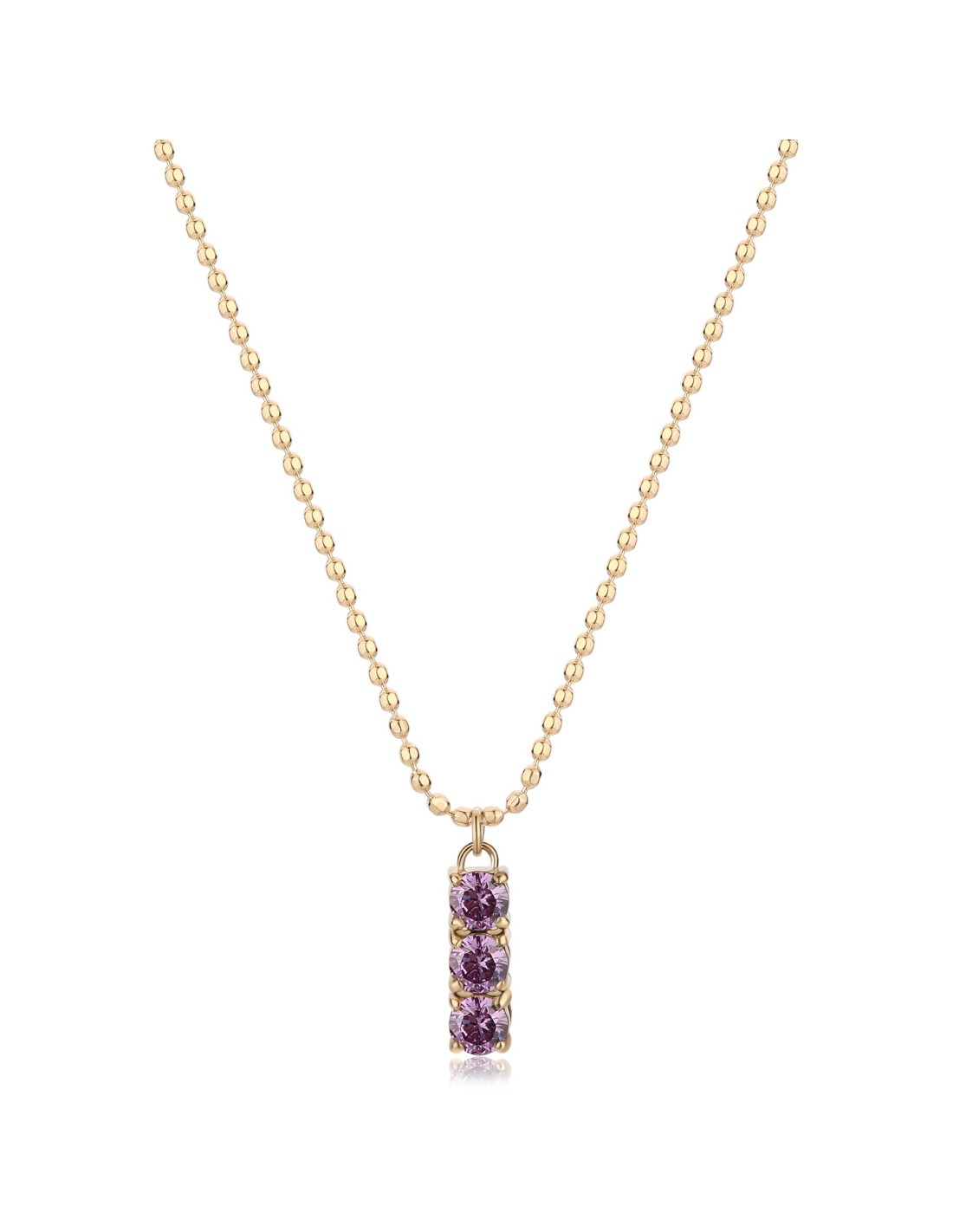 Collana girocollo a sfere piccole in acciaio 316L, finitura pvd oro 14K e pendente centrale con cubic zirconia colore violet.