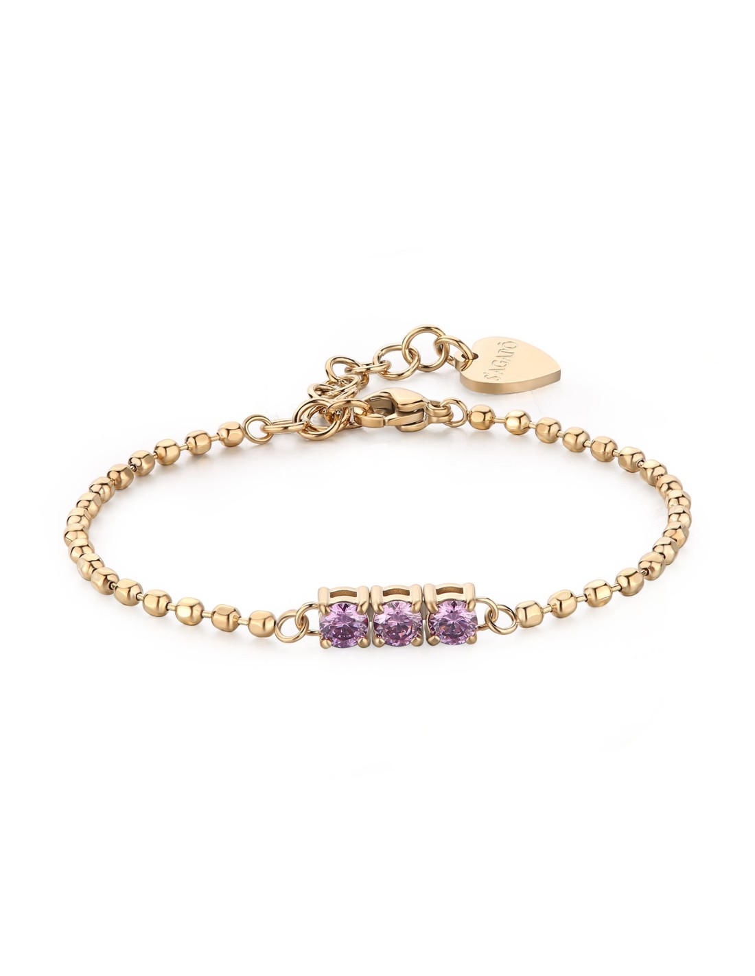 Bracciale a sfere piccole in acciaio 316L, finitura pvd oro 14K e centrale con cubic zirconia colore violet.