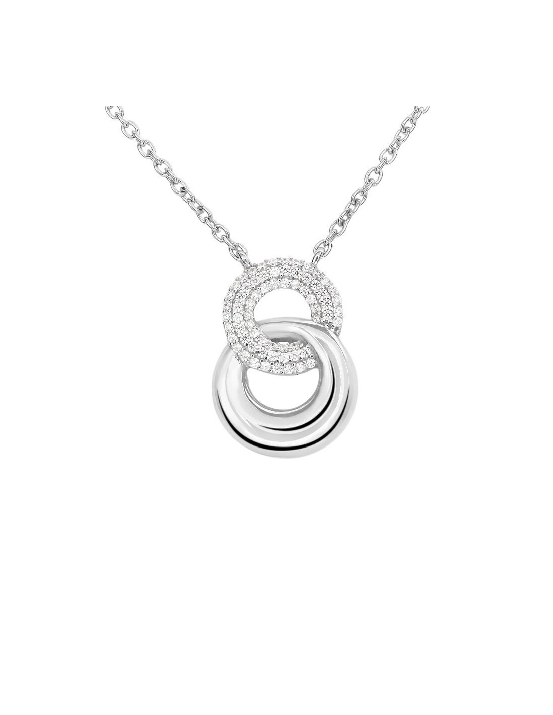 Collana Doppio Cerchio Silver Shine Argento Rodiato 925/1000 Maglia Forzatina Cubic Zirconia Bianco 42+3 cm 1691552