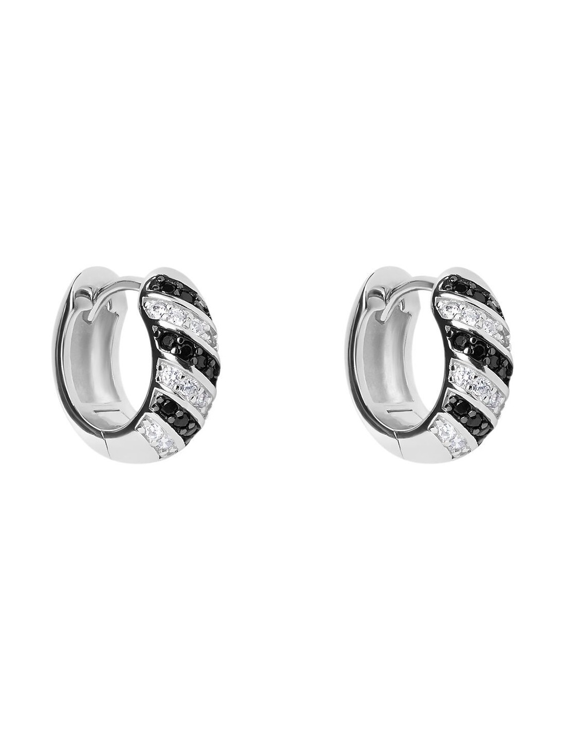 Orecchini A Cerchio Silver Shine Argento Rodiato 925/1000 Diametro 15 mm Cubic Zirconia Nero Cubic Zirconia Bianco 1691550