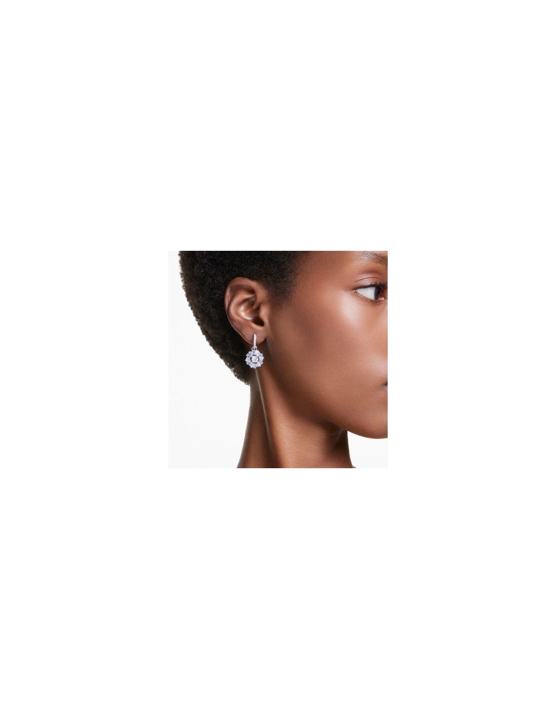Questi energizzanti orecchini Idyllia, con la loro stimolante miscela di colori, sono una squisita dimostrazione del savoir-faire Swarovski. Ogni creazione placcata rodio è fissata su un mini cerchio impreziosito da cristalli Cry e presenta un fiore vibrante, accuratamente lavorato con Swarovski Zirconia blu e trasparenti. Uno Swarovski Zirconia fisso al centro cattura la luce da ogni angolazione. Indossa questi orecchini per elevare immediatamente il tuo stile.