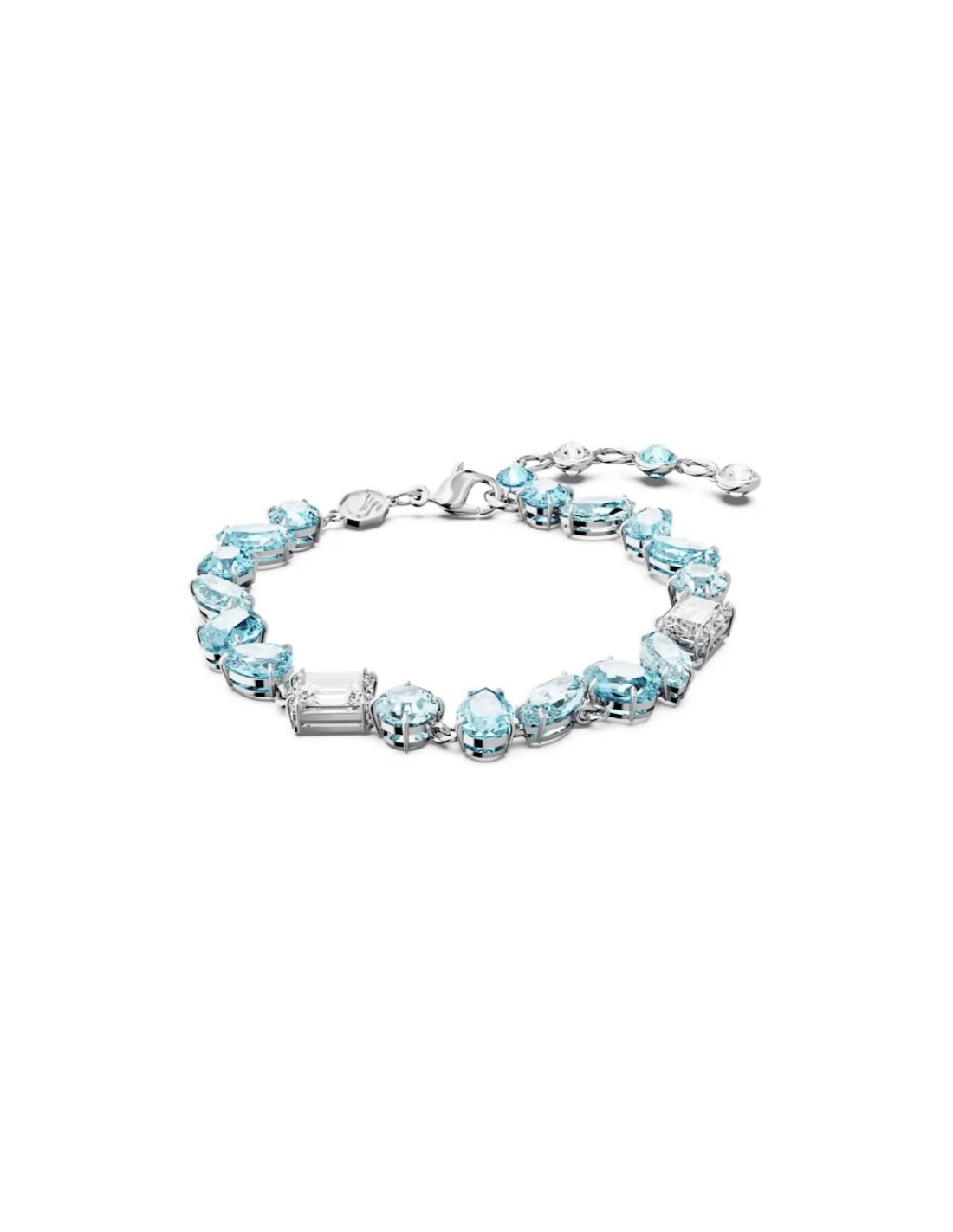 Questo bracciale Gema dalle sfumature blu ghiaccio sarà unaggiunta straordinaria a qualsiasi collezione di gioielli. Il design placcato rodio gioca con una varietà di tagli e colori ispirati allo stile bohémien ed eseguiti con un savoir-faire allinsegna del lusso. Indossalo da solo per un glamour dal tocco disinvolto o sovrapponilo ad altri gioielli di questa affascinante famiglia per una serata speciale.