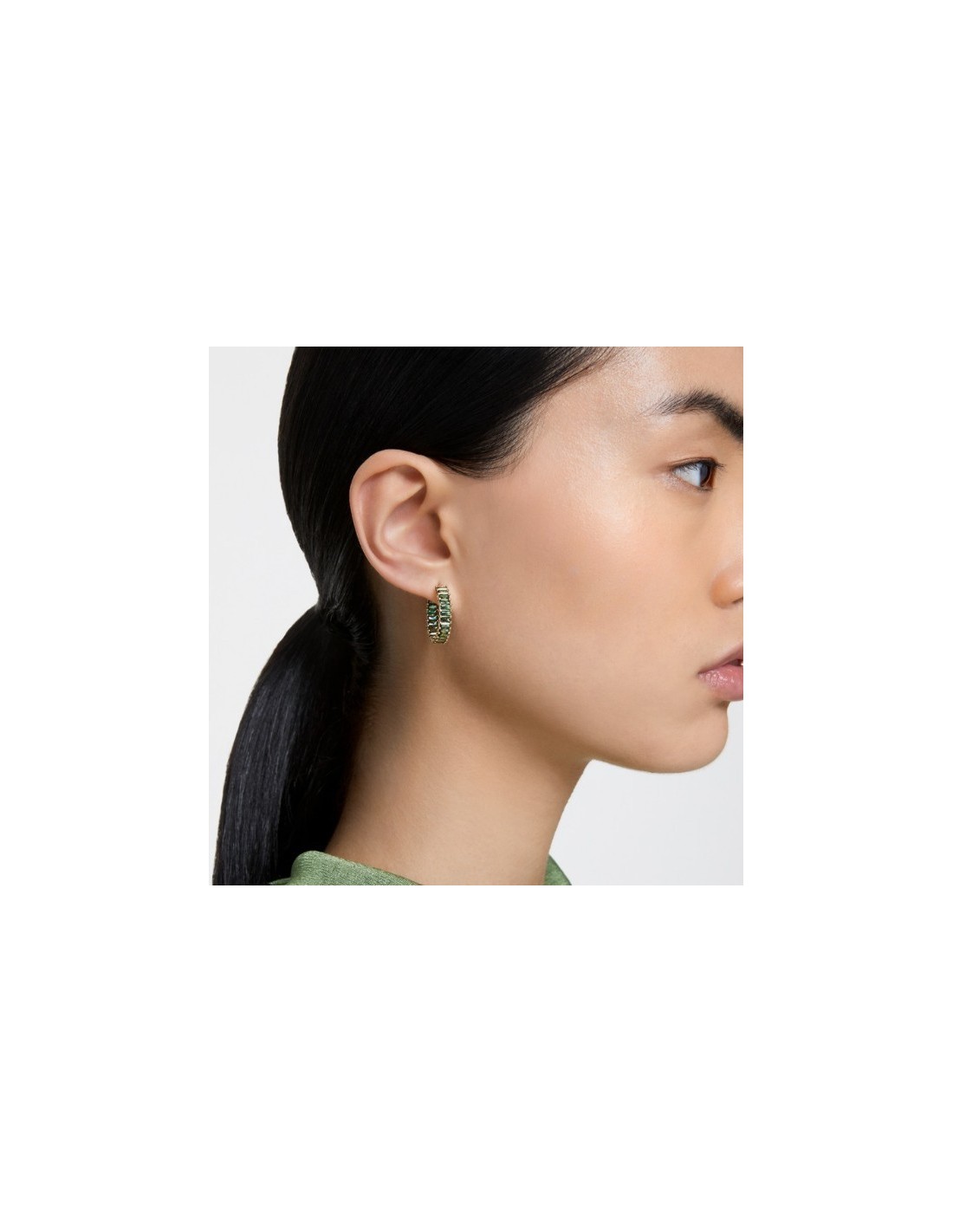 Orecchini a cerchio Matrix, Taglio baguette, Verdi, Placcato color oro
