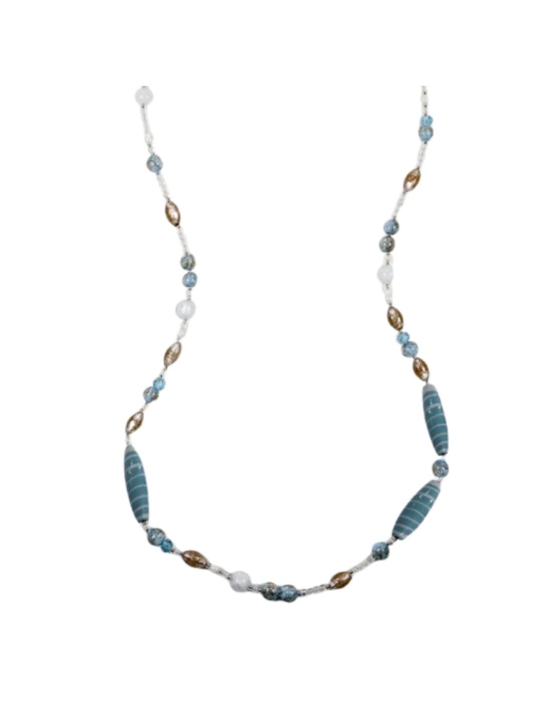 Collana lunga ANTICA MURRINA Ortensia azzurra in acciaio e perle in vetro di Murano CL6OPE2507