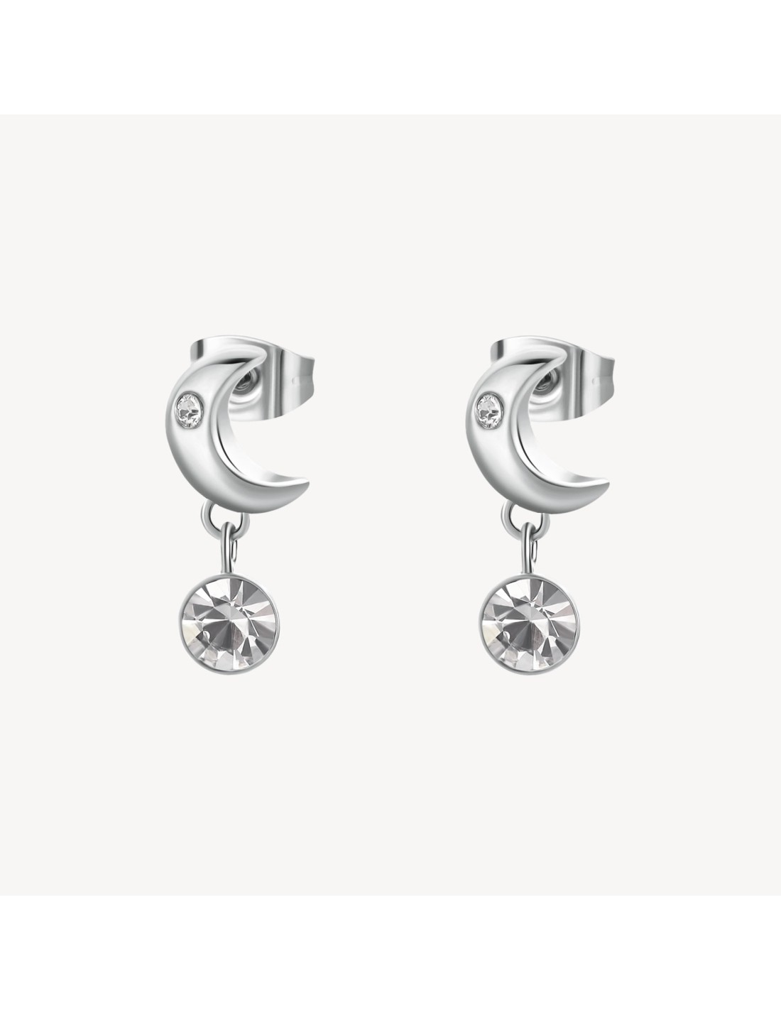 Orecchini in acciaio 316L a forma di luna e cristalli.