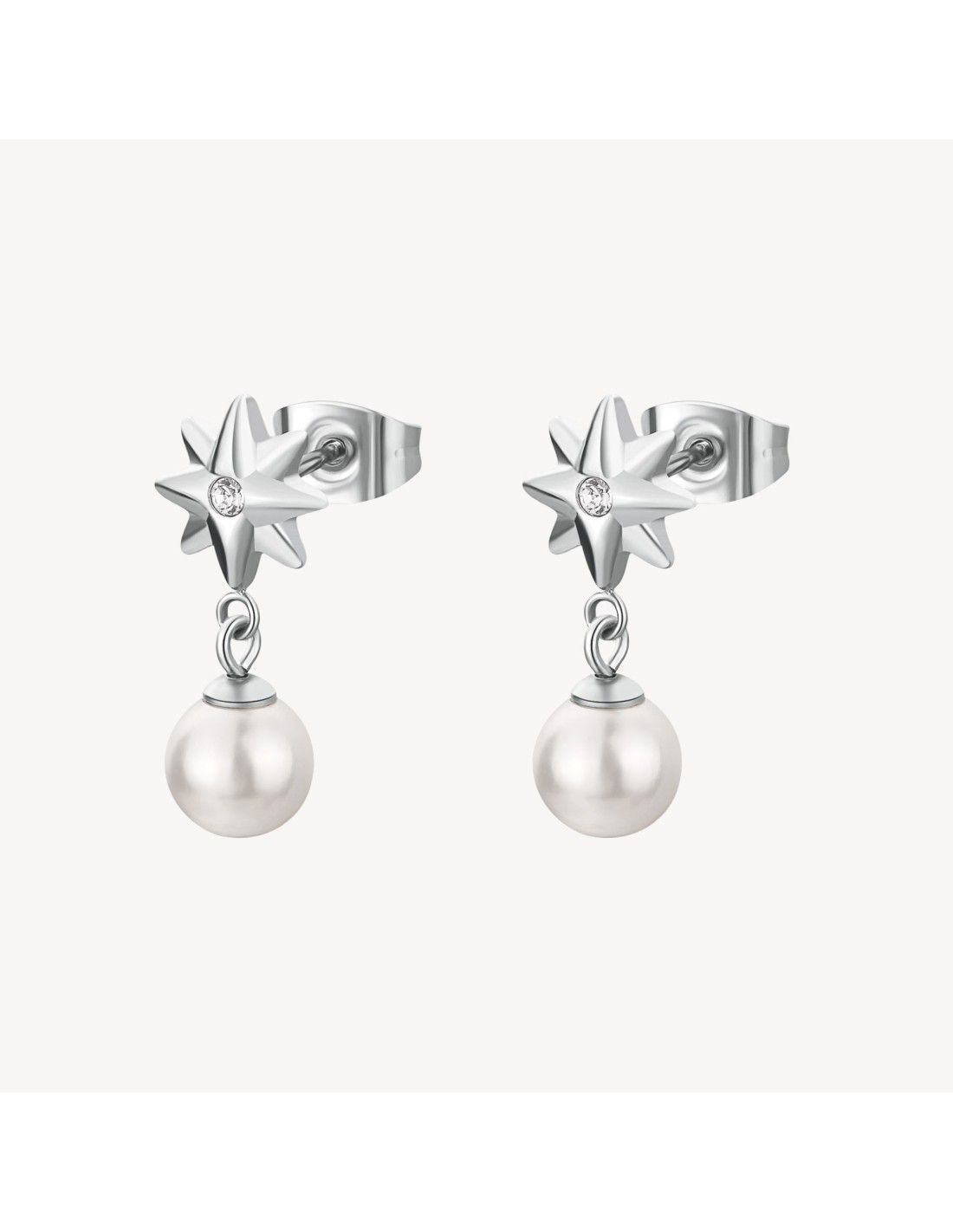 Orecchini in acciaio 316L a forma di rosa dei venti e cristalli.