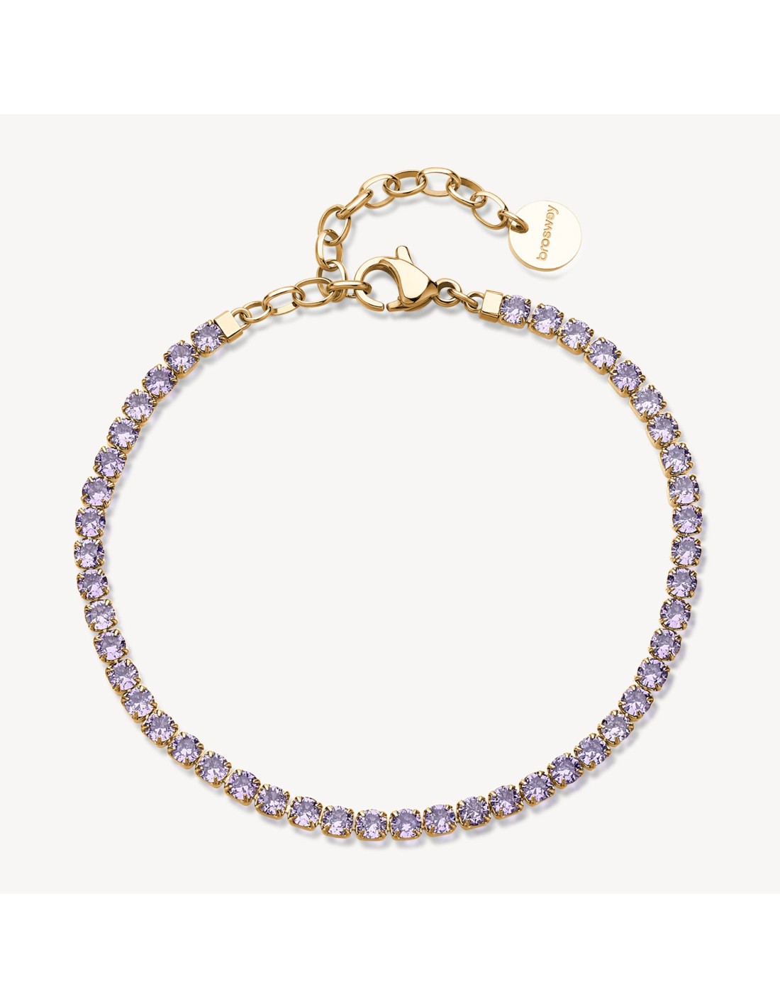 Bracciale tennis in acciaio 316L, finitura pvd oro 14K con cubic zirconia colore amethyst.
