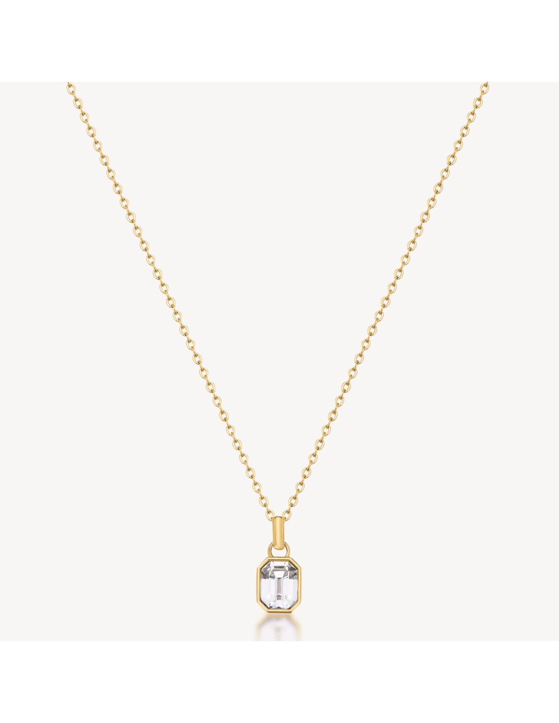 Collana girocollo in acciaio 316L, finitura pvd oro 14K e pendente con cristallo.