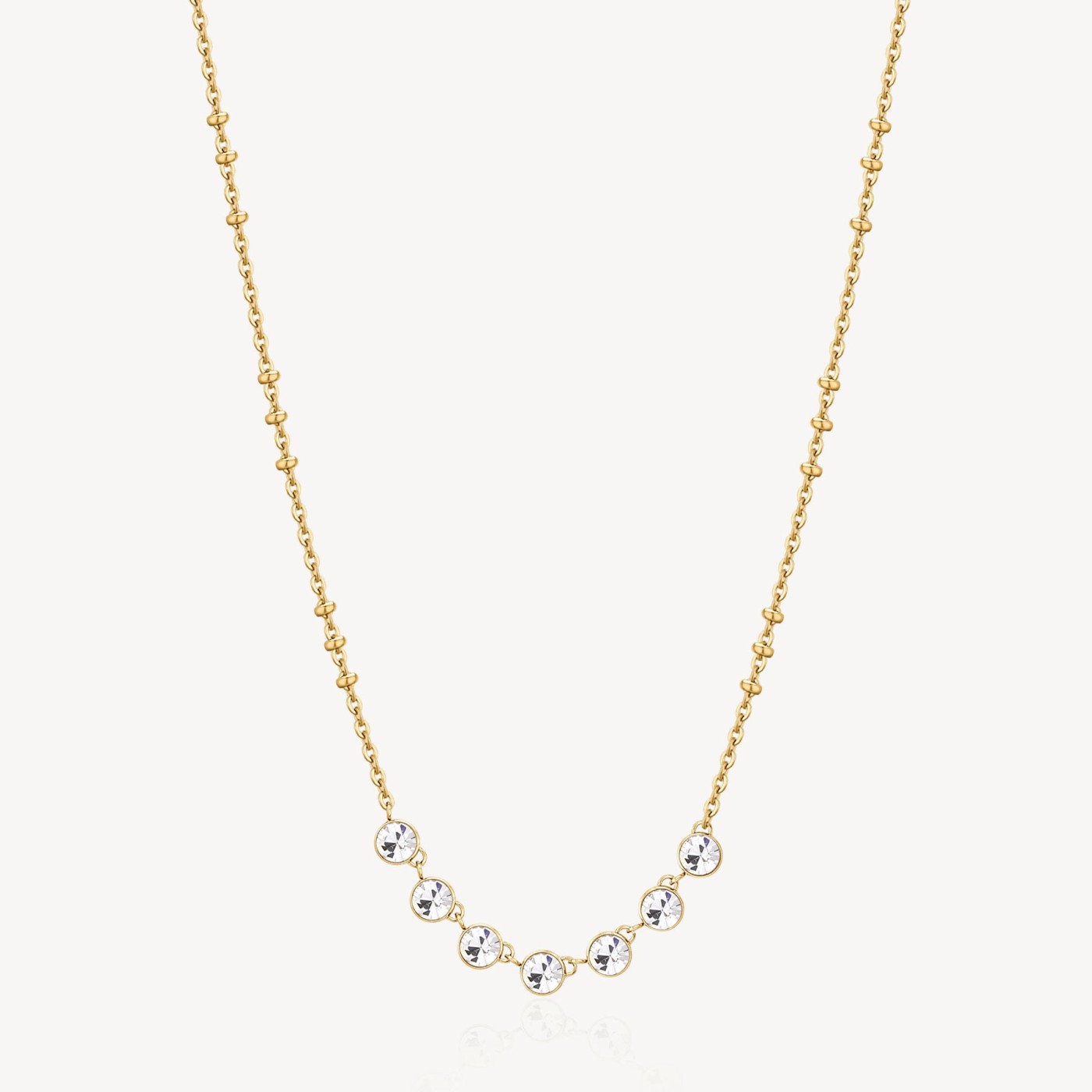 Collana girocollo in acciaio 316L e finitura pvd oro 14K con cristalli.
