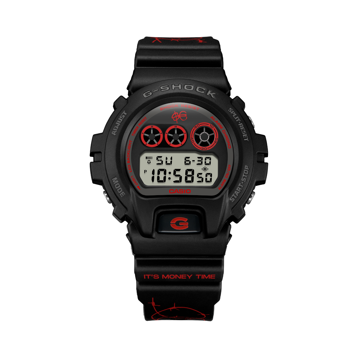 La partnership tra Sfera Ebbasta e G-SHOCK fonde perfettamente il percorso creativo dellArtista con la tradizione e l'innovazione ingegneristica di G-SHOCK. Audace e meticolosamente rifinito, questo orologio è l'accessorio definitivo per chi vive al massimo ed è #BuiltDifferent. Questa esclusiva collaborazione vede Sfera Ebbasta reinterpretare e personalizzare due casse storiche di G-SHOCK, la serie 5600 e 6900. Ogni dettaglio racconta una storia, il cinturino è caratterizzato da un motivo a filo spinato, aggiungendo un tocco di streetwear al design indistruttibile di G-SHOCK. Il mantra Its Money Time è impresso sul cinturino, il logo $ è inciso con cura sul fondello ed è presente sulla cassa dellorologio. La retroilluminazione, personalmente scelta dallartista di colore rosso, tinta distintiva e simbolica di Sfera Ebbasta, svela magicamente il logo $ sul quadrante. Tutti i dettagli conferiscono esclusività a questi modelli, rendendoli unici. Sfera Ebbasta ha infuso nel design di questi orologi un'energia unica, scegliendo come palette il rosso intenso e il nero, con elementi cromatici inversi per un look che non passa inosservato. Due modelli iconici, due colorazioni speculari, pensati per chi vuole ridefinire le proprie regole.
