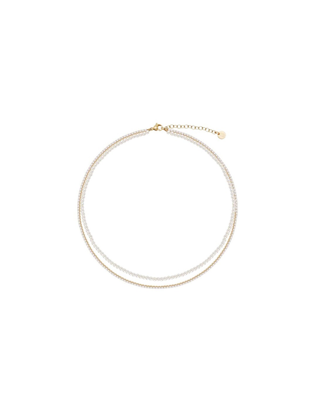 Collana doppio filo LIU-JO in acciaio dorato con perline e cristalli LJ3026