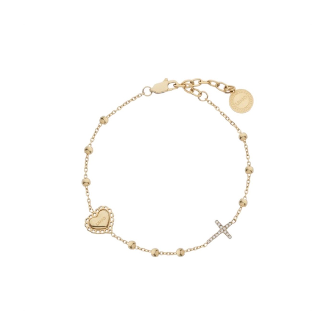 Bracciale a rosario LIU-JO Spirituality in acciaio dorato con cuore e croce LJ3202