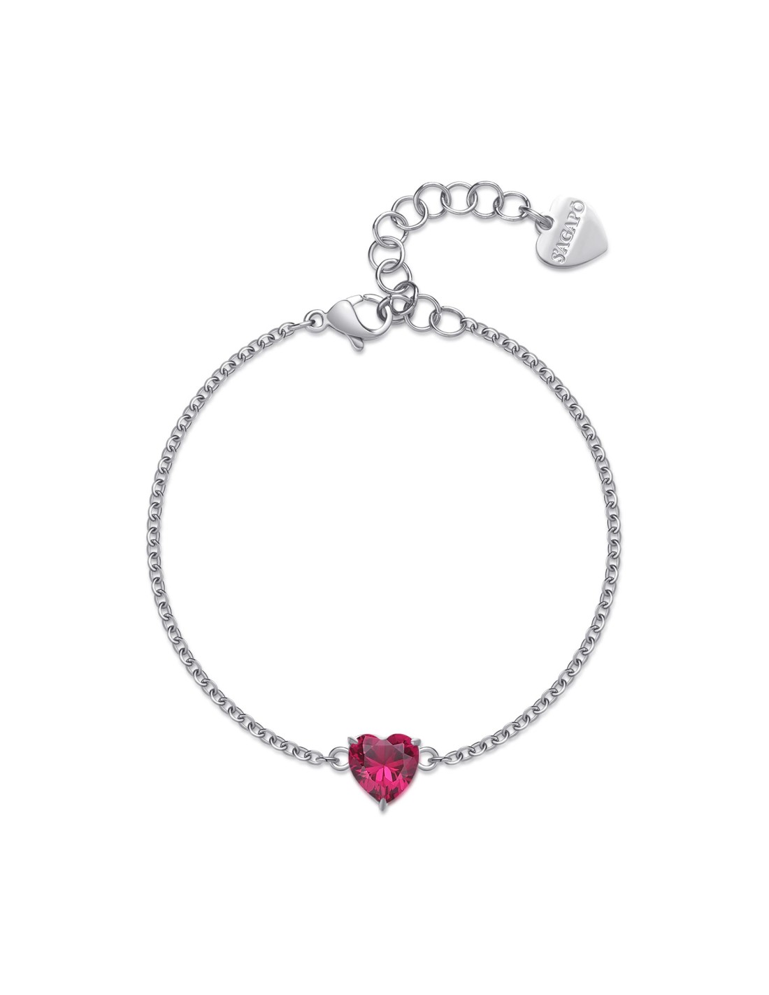 Bracciale in acciaio 316L con centrale a forma di cuore con cubic zirconia colore ruby.
