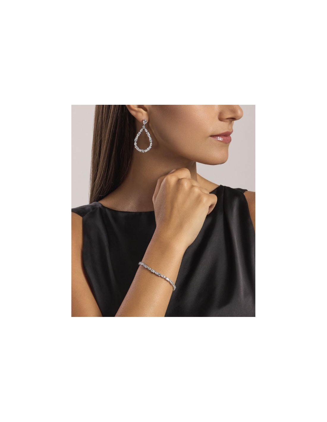 Orecchini da donna in argento rodiato con pendente a forma di goccia con navette e zirconi taglio baguette e taglio goccia.