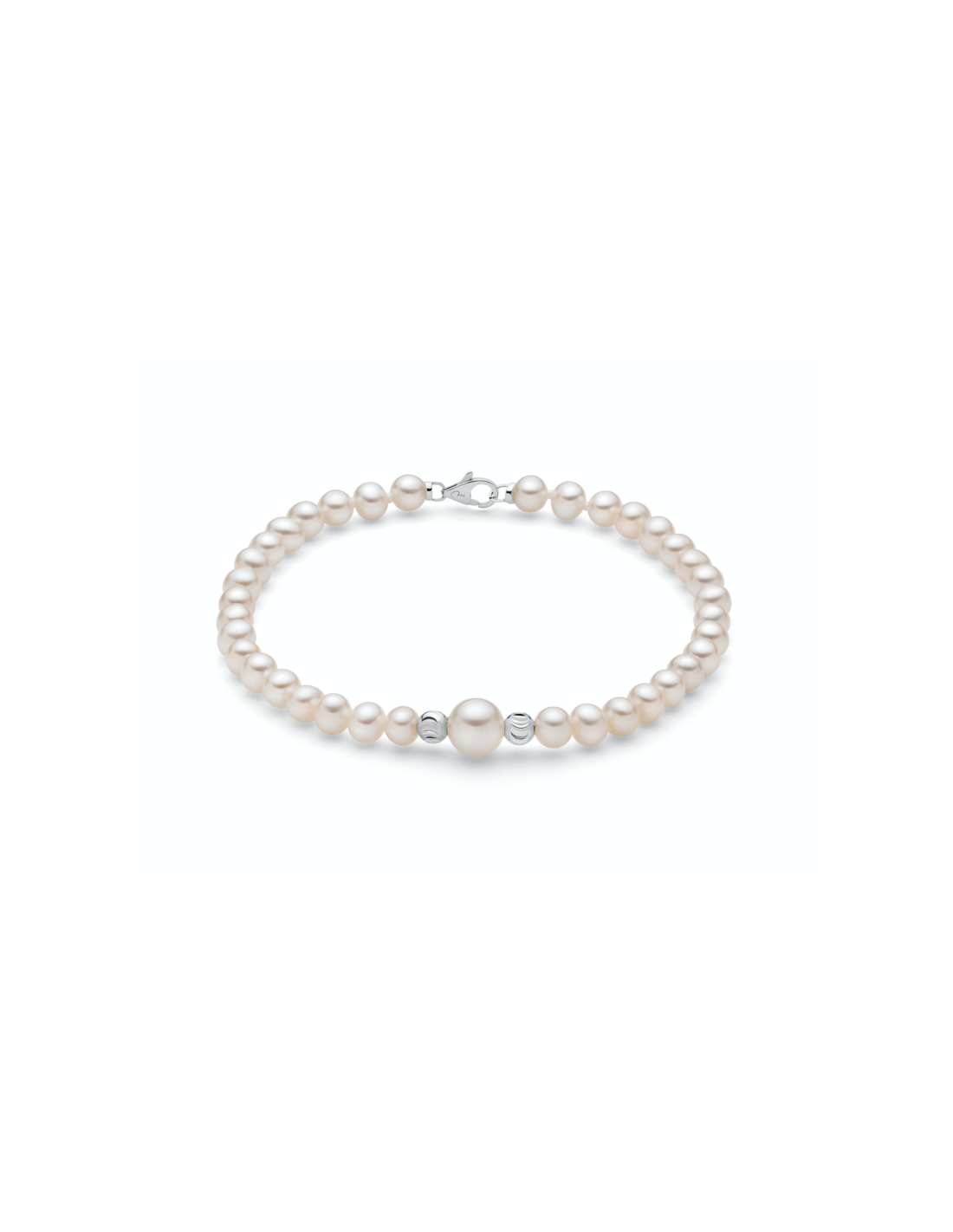 Bracciale filo di perle MILUNA in oro bianco 18Kt e perle Ø 4-4,5 con boule in oro PBR3713