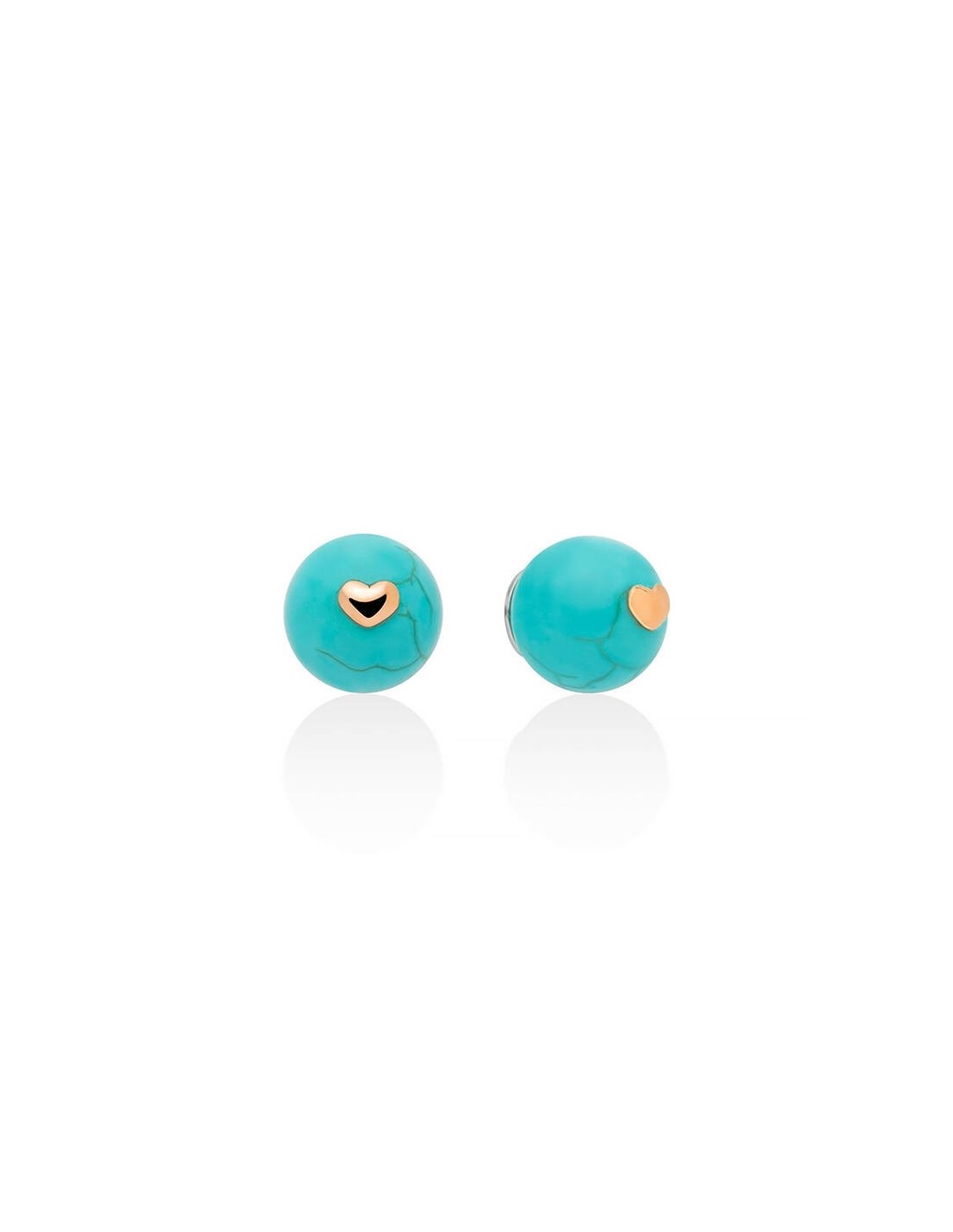 Orecchini da donna Miluna I Segreti della Natura in Argento 925 con 2 Sfere Aulite color Turchese da 8 mm e Cuoricino centrale in Oro Rosa . Gli orecchini hanno una chiusura a Farfalla in argento 925 color Oro Rosa.