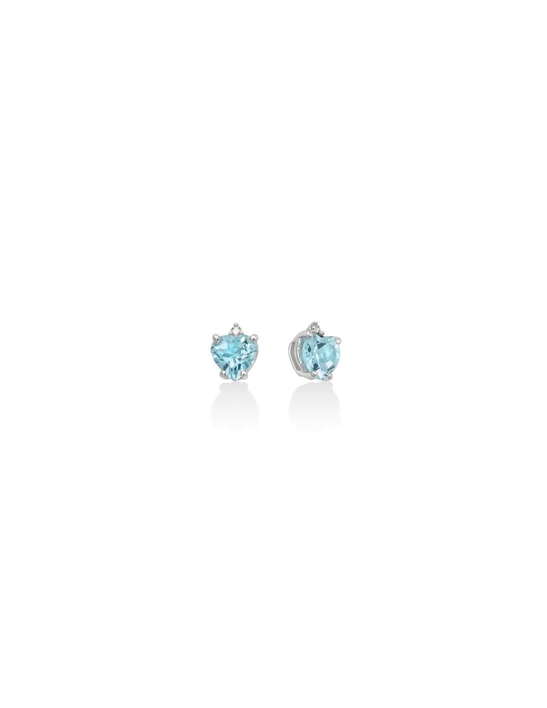 Gemma: 2 topazi azzurri naturali taglio cuore 5x5 mm 1,04 ct totali, 2 diamanti naturali taglio brillante rotondo 1,12 pt totali.