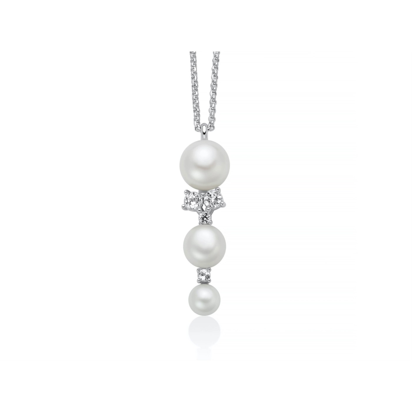 Collana MILUNA in argento 925 con pepite di perle ed elementi in argento diamantato...