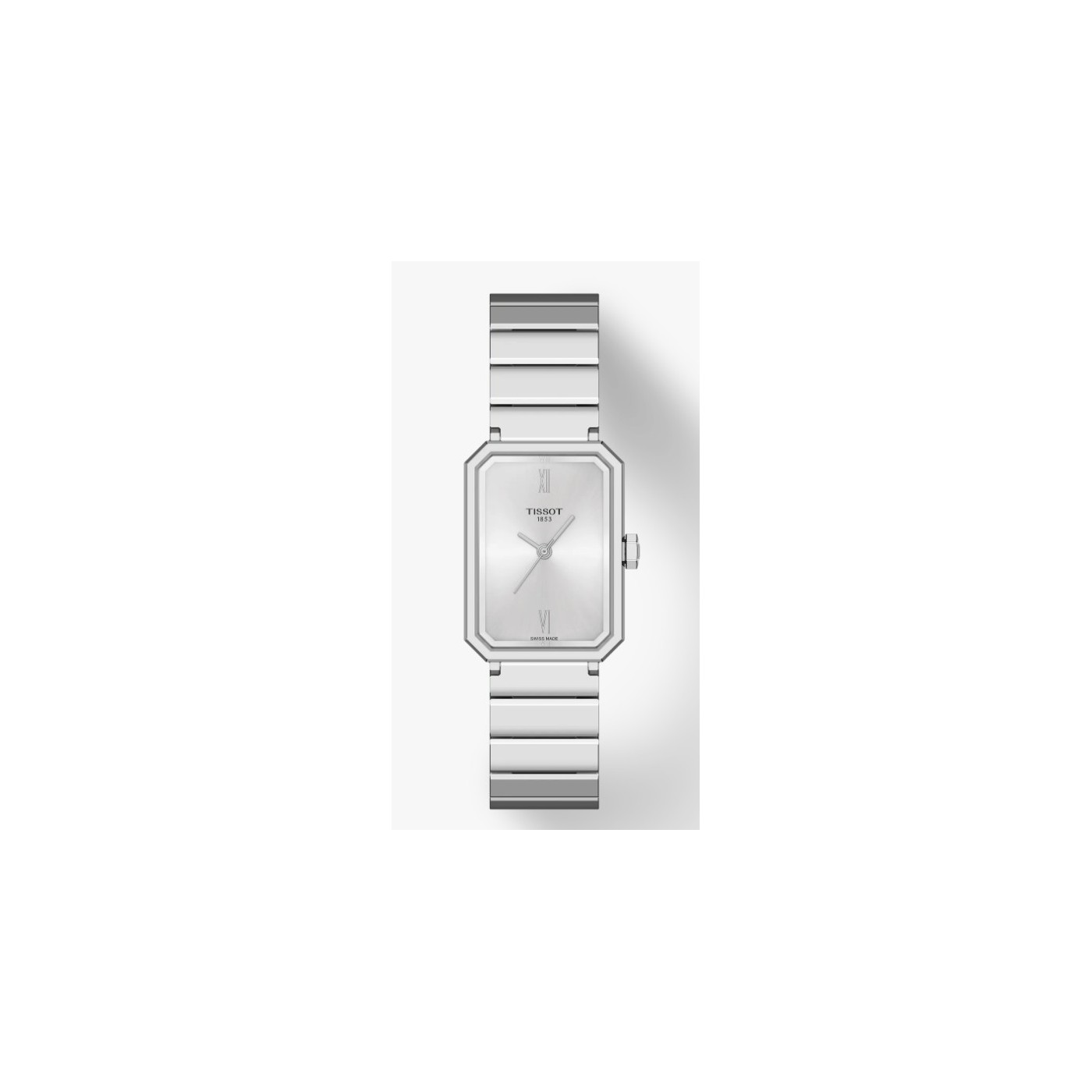 L'orologio SRV si ispira all'Art Déco degli anni '20. Quest'epoca è caratterizzata da forme geometriche e motivi astratti, diventati uno stile dominante in architettura, interior design, moda e arti grafiche. Sebbene l'SRV si ispiri direttamente a un modello del 1975, quel design era a sua volta una reinterpretazione delle precedenti creazioni Tissot degli anni '20. Il movimento al quarzo dell'SRV offre una precisione assoluta e grazie all'indicatore di fine vita, l'SRV anticipa la sua prossima mossa, per essere sempre pronto. Più che un nome, SRV sta per Sapphire Rectangle V: un vetro zaffiro sfaccettato con una silhouette rettangolare, e la "V" un omaggio alla sua impermeabilità di 5 bar, simboleggiata dal numero romano 5. Il bracciale in metallo è comodo, robusto, facile da pulire e durevole.