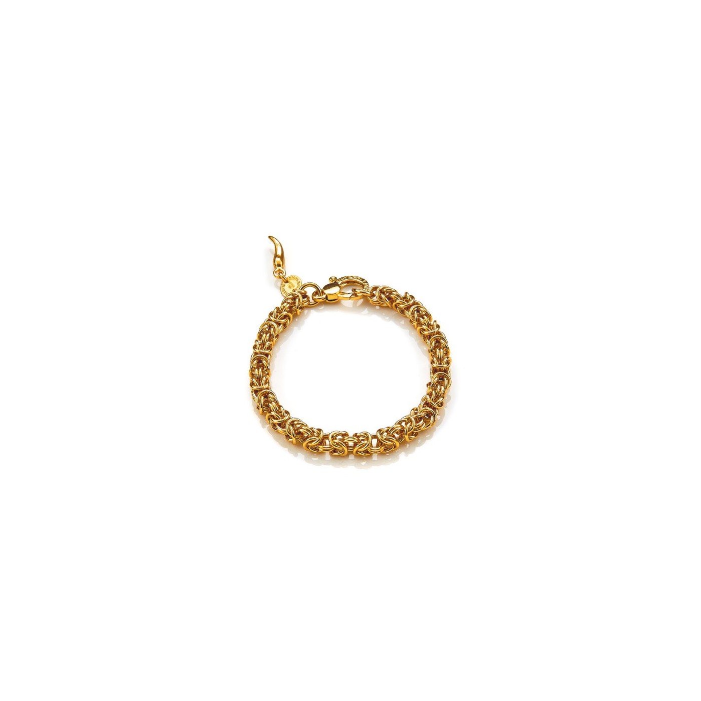 Nel bracciale Mini Bizantina in bagno d'oro l'argento dorato viene declinato nelle forme più eleganti della nostra tradizione contemporanea. Una catena classica, un evergreen senza tempo che diviene luminoso gioiello raccontando legami infiniti di bellezza.