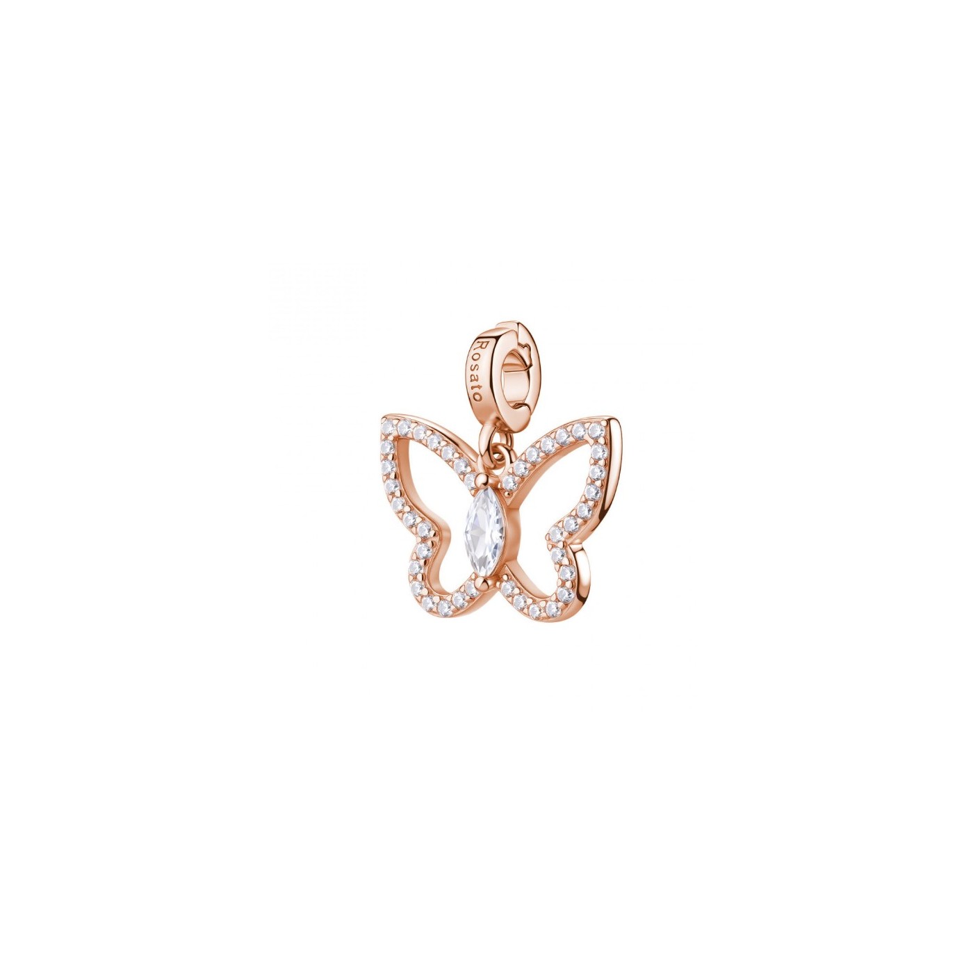 Charm ROSATO Storie in argento 925 placcato oro rosa RZ264 con cristalli FARFALLA/SOGNO