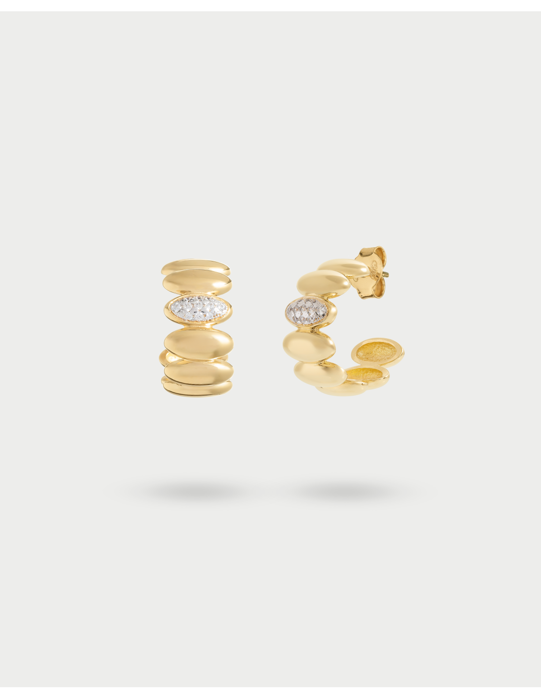 Le forme ellittiche, morbide e armoniose, ricordano i movimenti celesti, evocando uneleganza cosmica che abbraccia chi la indossa.