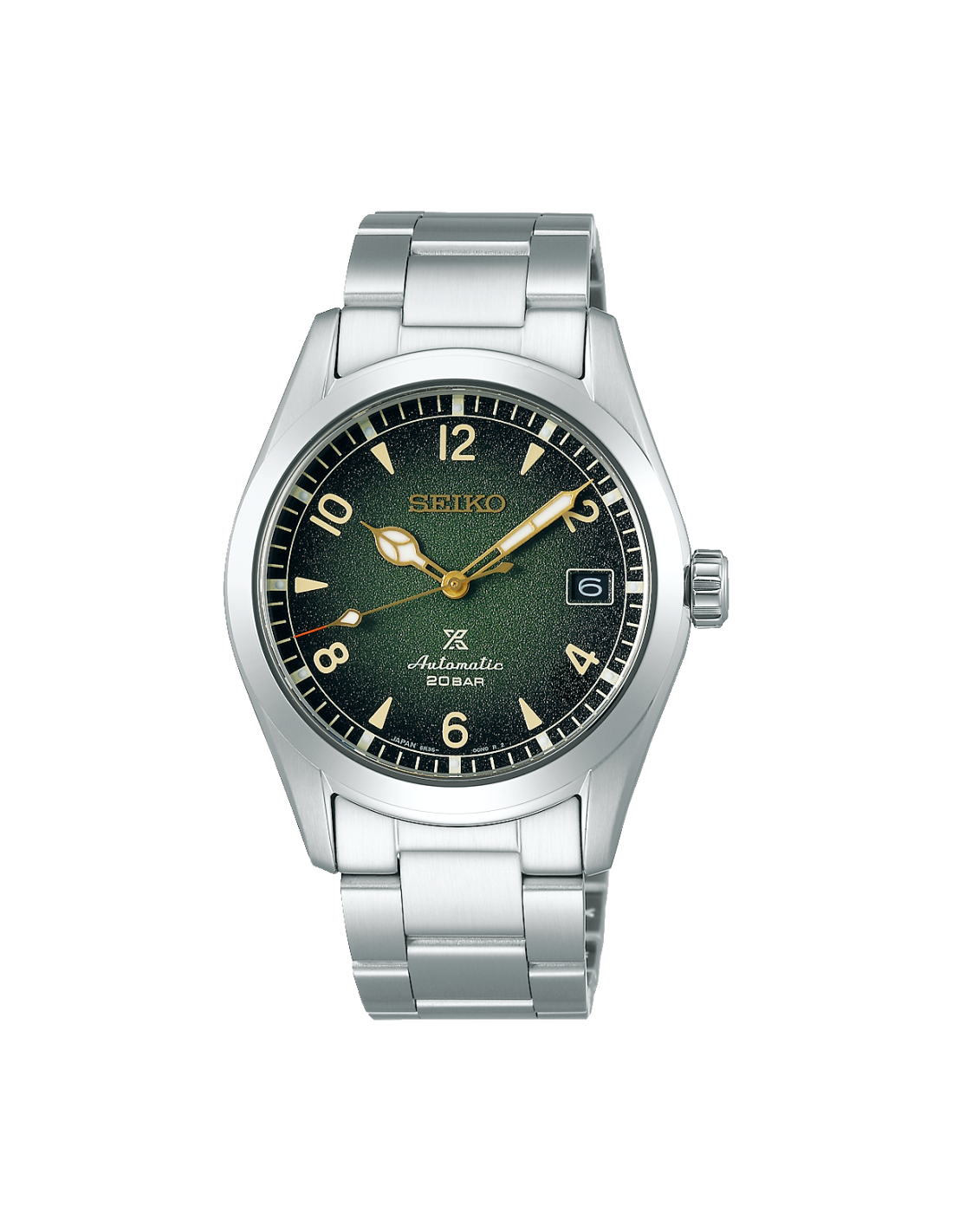 L'emblematico modello Seiko "Alpinist" integra la collezione PROSPEX, con il logo X sul quadrante, ma conservando l'inimitabile design chic e vintage. Il modello PROSPEX SPB155J1 automatico integra l'emblematica combinazione dei colori, toni del verde sul quadrante e dorati sulle lancette, gli indici e i numeri. Questo orologio PROSPEX, con una resistenza all'acqua di 20 bar, è montato su un bracciale in acciaio inossidabile che esalta perfettamente i colori del quadrante.