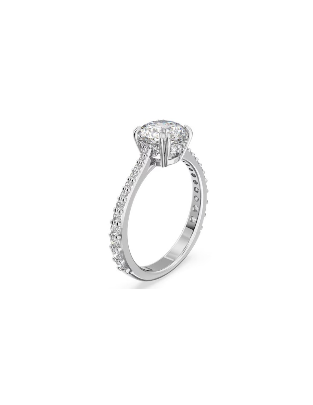 Anello cocktail Constella, Taglio tondo, Pavé, Bianco, Placcato rodio