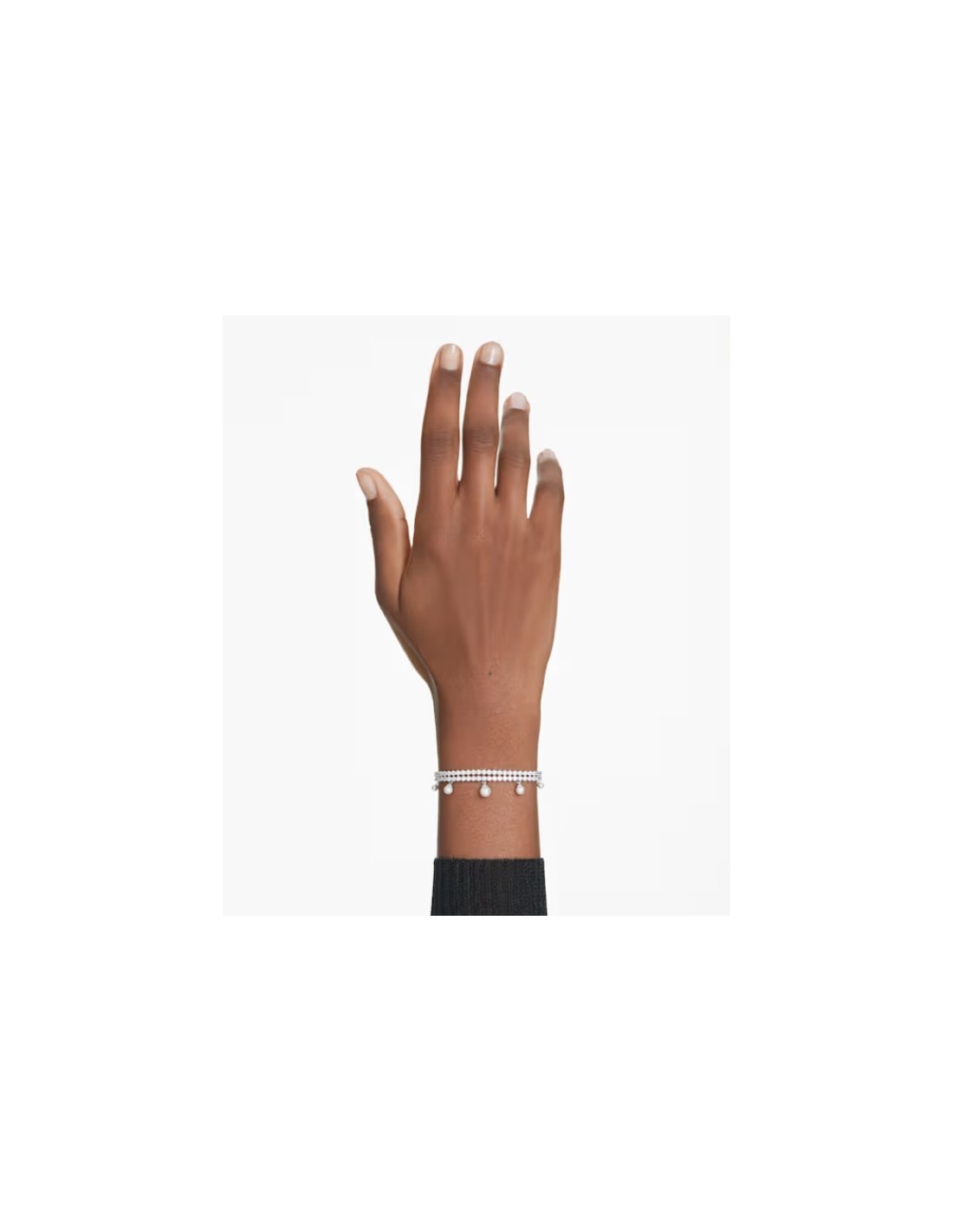 Scopri una pura espressione di eleganza con questo raffinato bracciale. Facile da regolare grazie alla chiusura con sfera scorrevole, il design placcato rodio presenta due file di cupchain, impreziosite da Swarovski Zirconia trasparenti con tagli Round. Una decorazione di Crystal Pearls Swarovski è stata poi aggiunta in basso per un look sensazionale di lusso. Abbina questo bracciale al girocollo coordinato per creare la tua personale combinazione espressiva.