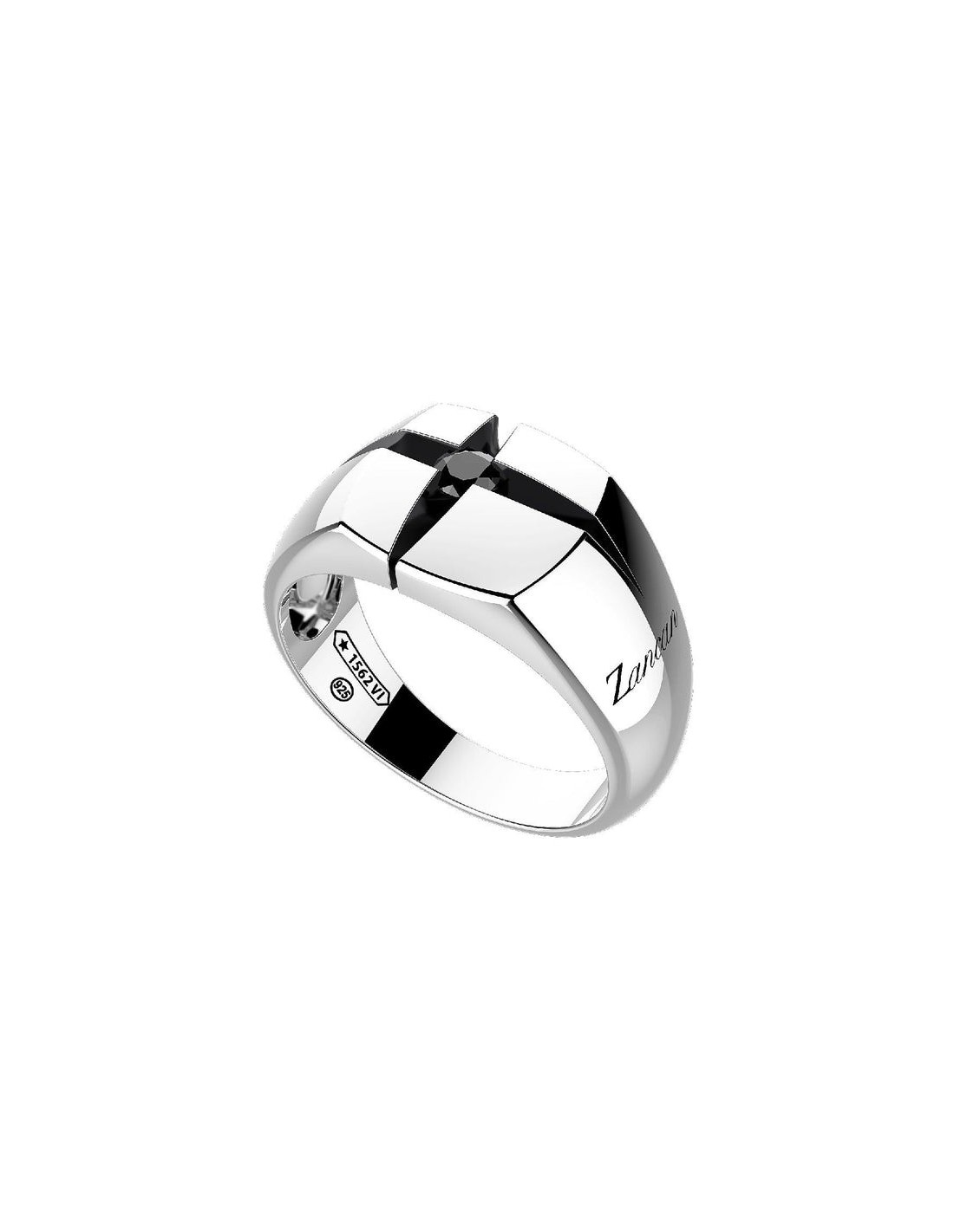 Anello chevalier della collezione Zancan Cosmopolitan da uomo. Colore: argento. Il gioiello è in argento 925 con spinello nero montato all'interno della croce ad incisione.